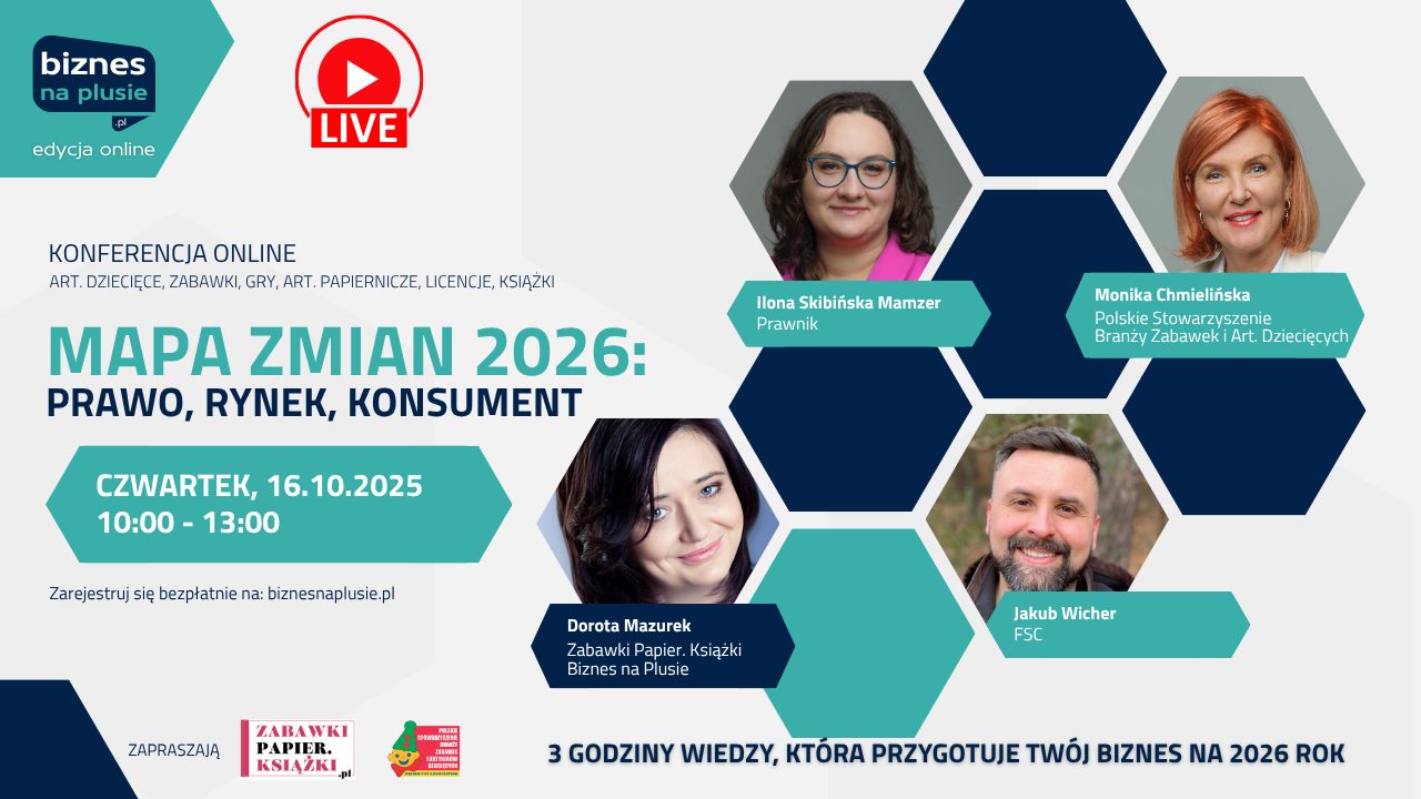 - Monika Chmielińska, Prezes Polskiego Stowarzyszenia Branży Zabawek i Artykułów Dziecięcych – Zwróci uwagę na to, na co branża powinna się przygotować w 2026 roku oraz które kategorie produktów (zabawki, artykuły papiernicze, książki) zyskają na atrakcyjności.